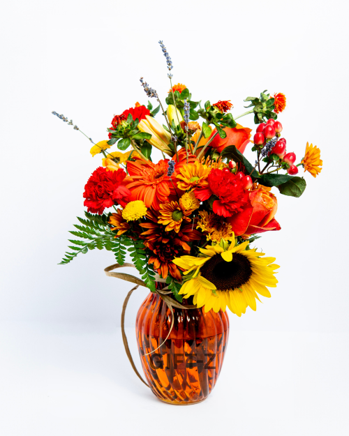 We hand-design each arrangement selecting only the freshest flowers available, so colors, varieties, and container may vary due to season and local availability.